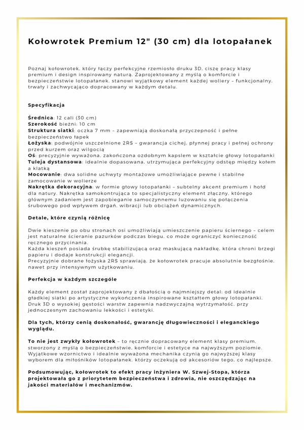 Pozwól swoim lotopałankom cieszyć się ruchem w stylu! Ten wyjątkowy kołowrotek został zaprojektowany z myślą o bezpieczeństwie, ciszy i estetyce, by spełniać najwyższe oczekiwania zarówno opiekuna, jak i jego pupili.