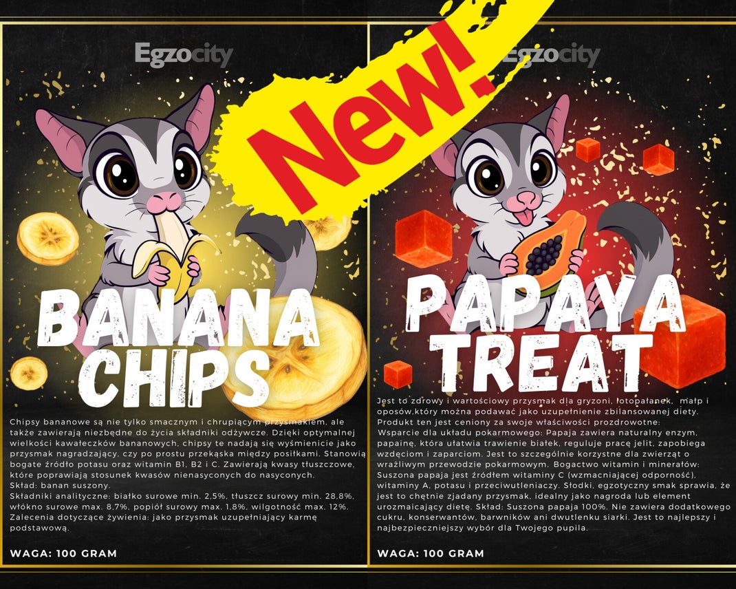 Witaj w Egzocity - najlepszym sklepie ze zdrową karmą dla lotopałanek karłowatych, wszystkich małych naczelnych Nowego Świata oraz oposów.
